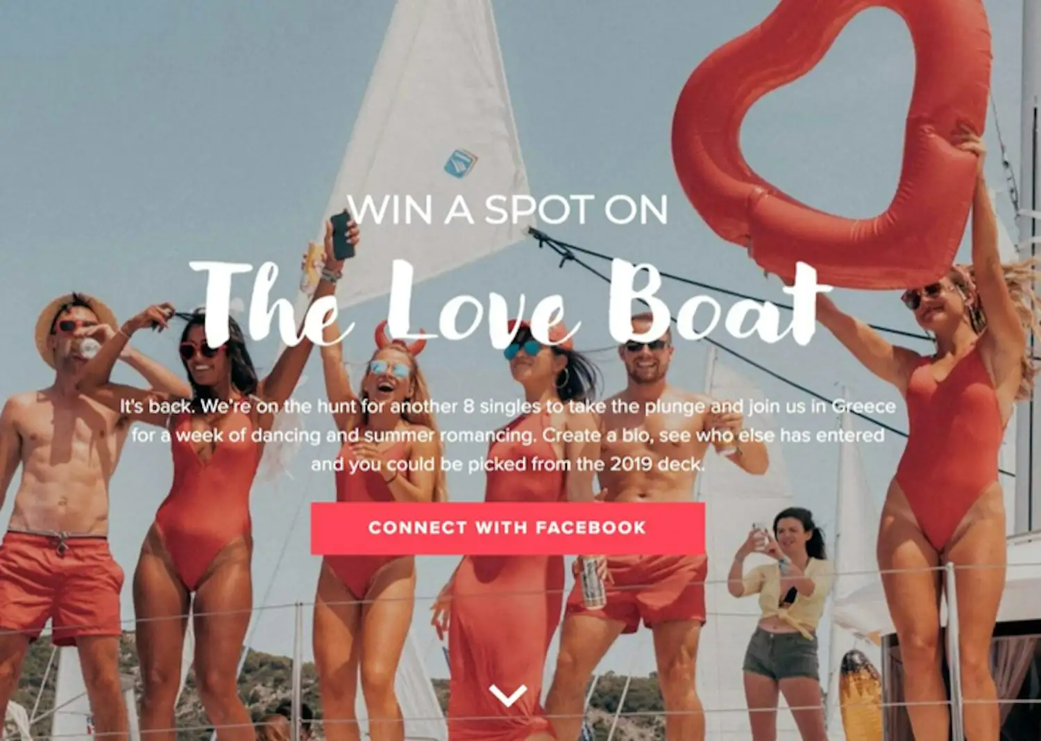 On Valentine's Day, we launched an awareness-driving campaign to celebrate single sailors in The Yacht Week community. We offered a prize of 1 of 8 spots on The Love Boat for a week of sailing and dating at sea. People signed up and created a profile on our microsite, where they answered questions to personalise their profile. They could then view and match with other profiles. The 8 most entertaining profiles won. The campaign resulted in 2300 profiles being created and 135,000 people being reached.