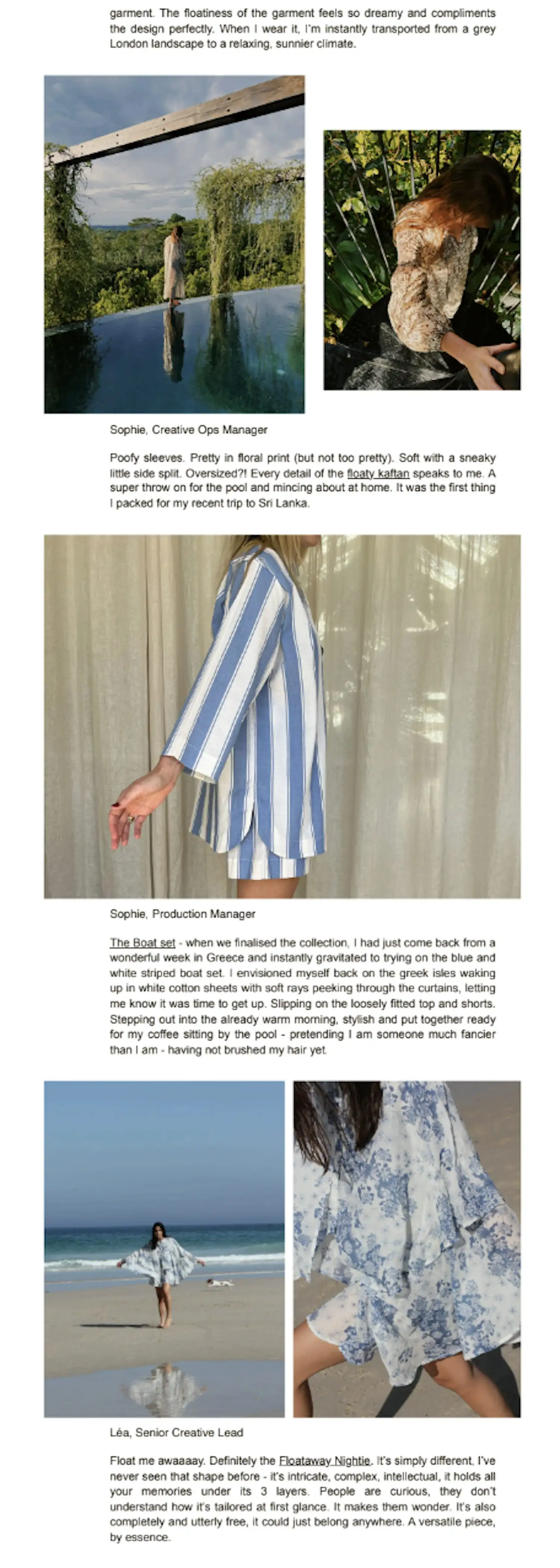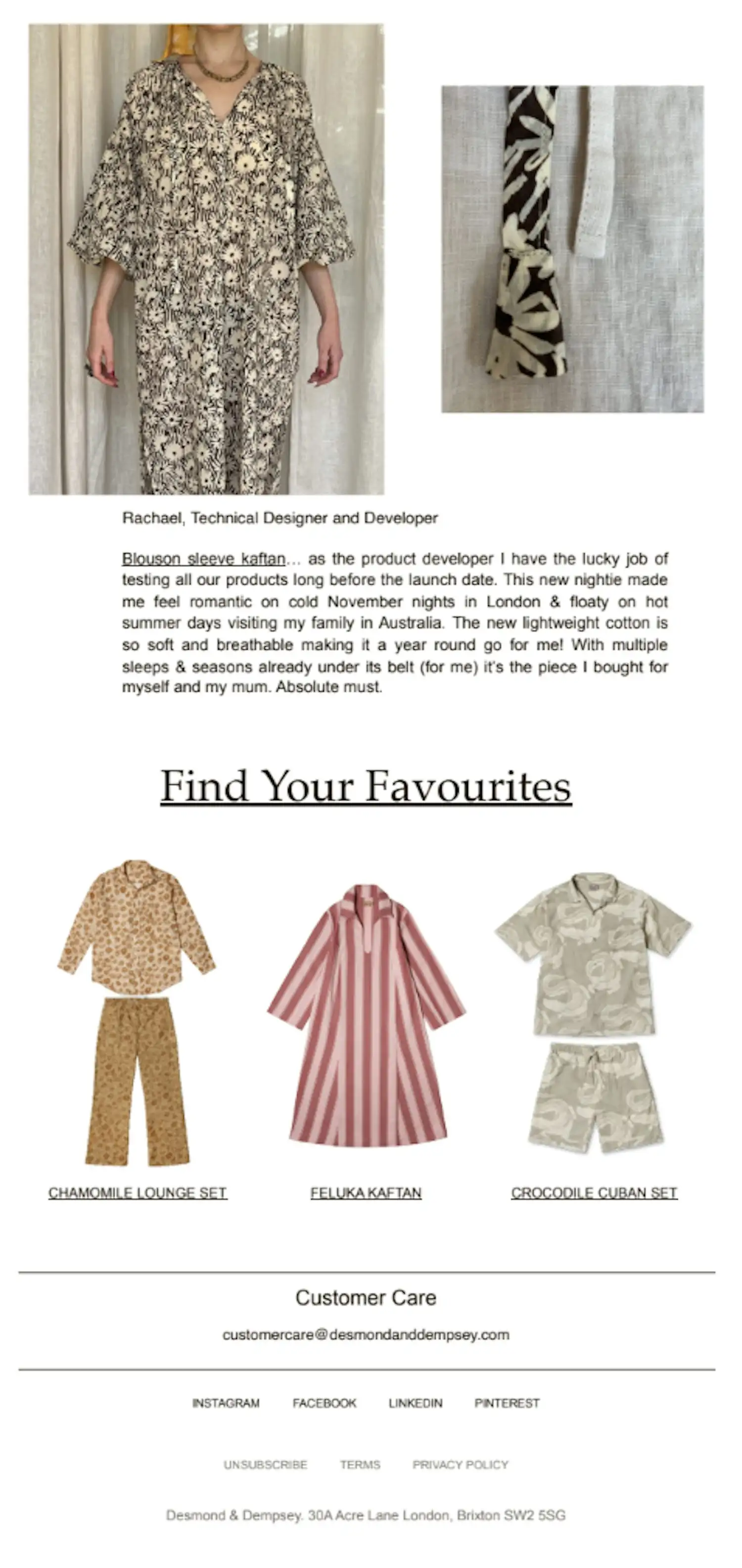 Replicated all of Desmond & Dempsey's ecom imagery, transitioning from a plain white background to beige to match the brand's warmer palette. I handled the casting and production.